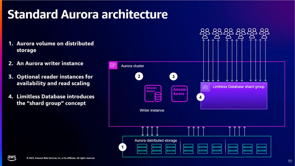 AWS announced Aurora Limitless back at Re:Invent 2023, which “scales your relational database workloads on Aurora beyond the limits of a single Aurora writer instance without needing to create custom application logic or manage multiple databases” [3] – but before we get into how AWS achieved this, what does scaling “beyond the limits of a single instance” actually mean?